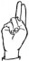 На ћирилици написано САВЕТА ГАШЕВИЋ састоји се из 13 слова [?]. Исписано ћириличном једноручном азбуком за глувонеме: